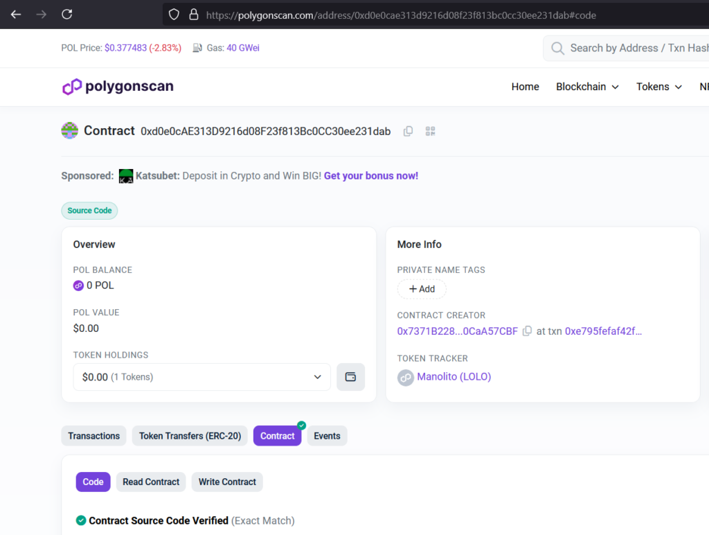 Otro día feliz para Manolito que ha validado su contrato en Polygonscan.